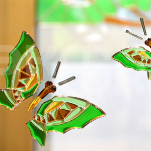 Фацеты — это огранённые кусочки из прозрачного или окрашенного в массе стекла. На протяжении десятилетий они будут иметь первоначальный вид и блистать во всей красе на солнце. Для выполнения окна в технике «фацетный витраж» мастера вручную наносят на светопрозрачную поверхность окна бевели — небольшие стёклышки в виде прозрачных огранённых камней. Используя такие украшения, как бевели, можно создавать невероятно красивые рисунки на стекле. Солнечные лучи преломляются, и ваша комната наполняется тёплым сиянием!